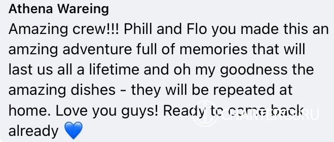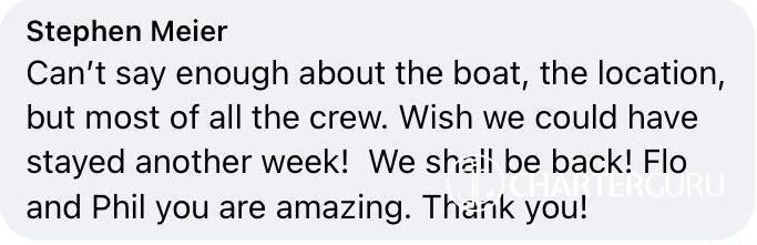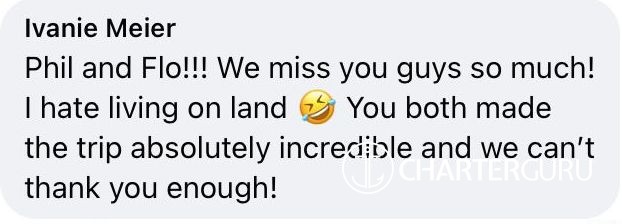 My wife and I highly recommend this boat but more importantly - this crew - for your dream vacation and the time of your life!